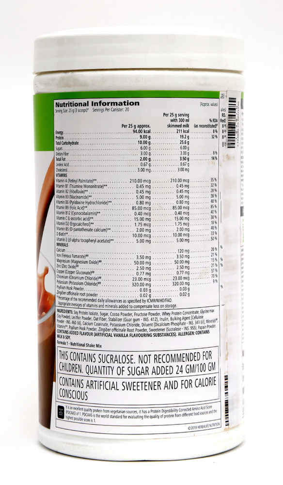 Herbalife Formula 1 Review (2022) - Should You Buy It? The Herbalife Formula 1 shake is pretty much just a well-branded Soya protein shake.. Soya being the cheapest form of protein powder available. There are additional vitamins and minerals added, but the product is completely lacking any proven fat burning ingredients or appetite suppressing ingredients. Independent Herbalife Distributor | Formula 1 Healthy Meal Nutritional ... 2 scoops Herbalife Formula 1 Nutritional Shake Mix, Vanilla Flavor; 1 cup (240 ml) non-fat milk, low-fat milk or soy milk; 1 kiwi, peeled and sliced; 1 cup (165 g) frozen pineapple chunks; 2 cups (60 g) baby spinach leaves; Place all ingredients in the blender and blend until very smooth. With Non-fat Milk Calories: 310 Protein: 21 g ... Herbalife Formula 1 Benefits - Nutrition Geeks Below are a few more Herbalife formula 1 benefits for your review. -Improved Bone Strength: Helps maintain healthy bones by providing calcium, magnesium, boron, and vitamin D which are all beneficial for stronger bones. -Healthy Immune System: Contains nutrients that help strengthen the immune system and prevent infections. Herbalife Formula 1 Nutrition Facts - This Nutrition Published on: 28/12/2020 | Last Updated: 07/04/2021. Learn more information about herbalife formula 1 nutrition facts. In this article we'll discuss herbalife formula 1 nutrition facts.