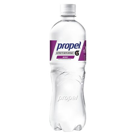 Propel Drinks Nutrition Facts Water Beverage With Electrolytes & Vitamins Zero Calories Berry Flavored Water (6-16.9 Fluid Ounce) 101.4 Fluid Ounce 6 Pack Plastic Bottles Zero Calories Black Cherry (6 - 16.9 Fluid Ounce) 101.4 Fluid Ounce 6 Pack Plastic Bottles Zero Calories Blueberry Pomegranate Flavored Water 24 Fluid Ounce Plastic Bottle