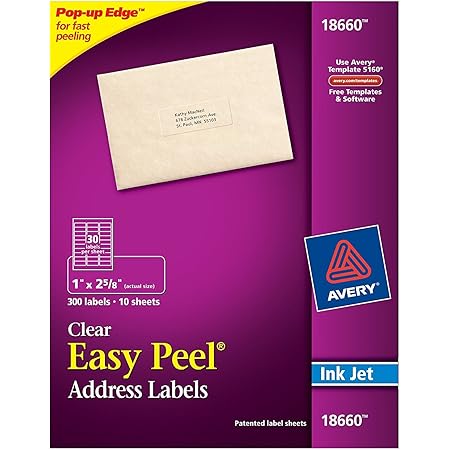 AVE5160 - Avery Easy Peel Address Label - amazon.com Avery Easy Peel Printable Address Labels with Sure Feed, 1" x 2-5/8", White, 750 Blank Mailing Labels (05260) ... Ideal for addressing, shipping and organizing. Labels are designed for use in laser printers. Avery offers many easy-to-use templates for microsoft word and other popular software programs. More from the manufacturer. Customer ...