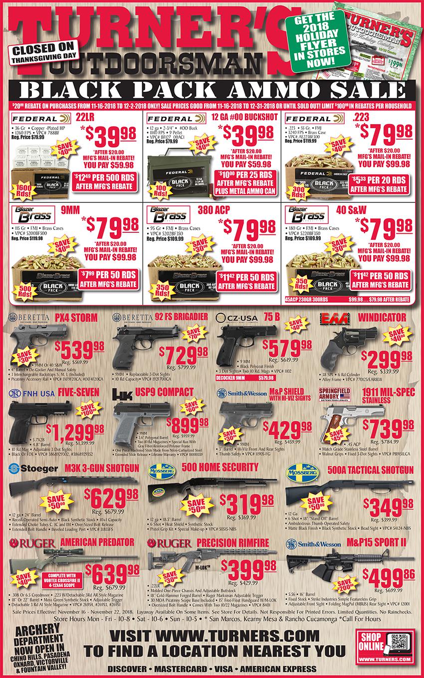 Federal Rebate: Black Friday Black Pack Bucks | Sportsman's Outdoor ... Federal Rebate: Black Friday Black Pack Bucks. Buy a minimum of two qualifying 2019 Federal Black Pack ammunition products and get $25 back. Calibers can be mixed and matched. Offer valid from Nov 24, 2019 through Dec 3, 2019. Rebate form