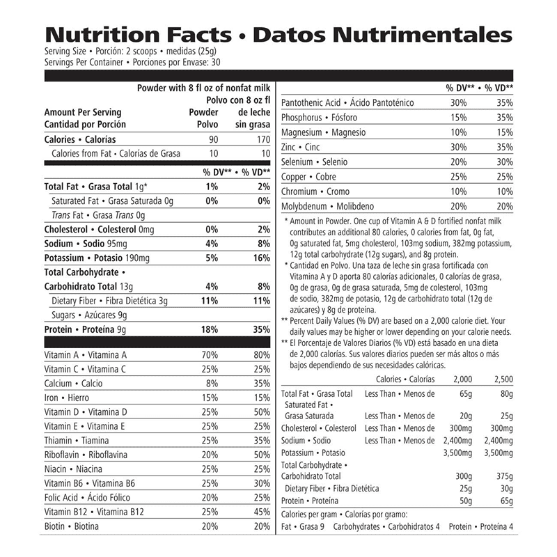 Formula 1 Healthy Meal Nutritional Shake Mix ... - Herbalife Nutrition 21 vitamins and minerals 170 calories when prepared as directed 0 cholesterol, 0 trans fats A good source of fiber Excellent source of antioxidant Vitamins A (as beta-carotene), C and E Usage Gently shake the canister prior to each use as contents may settle. Blend or stir 2 scoops with 8 oz. of nonfat milk or soymilk and enjoy!