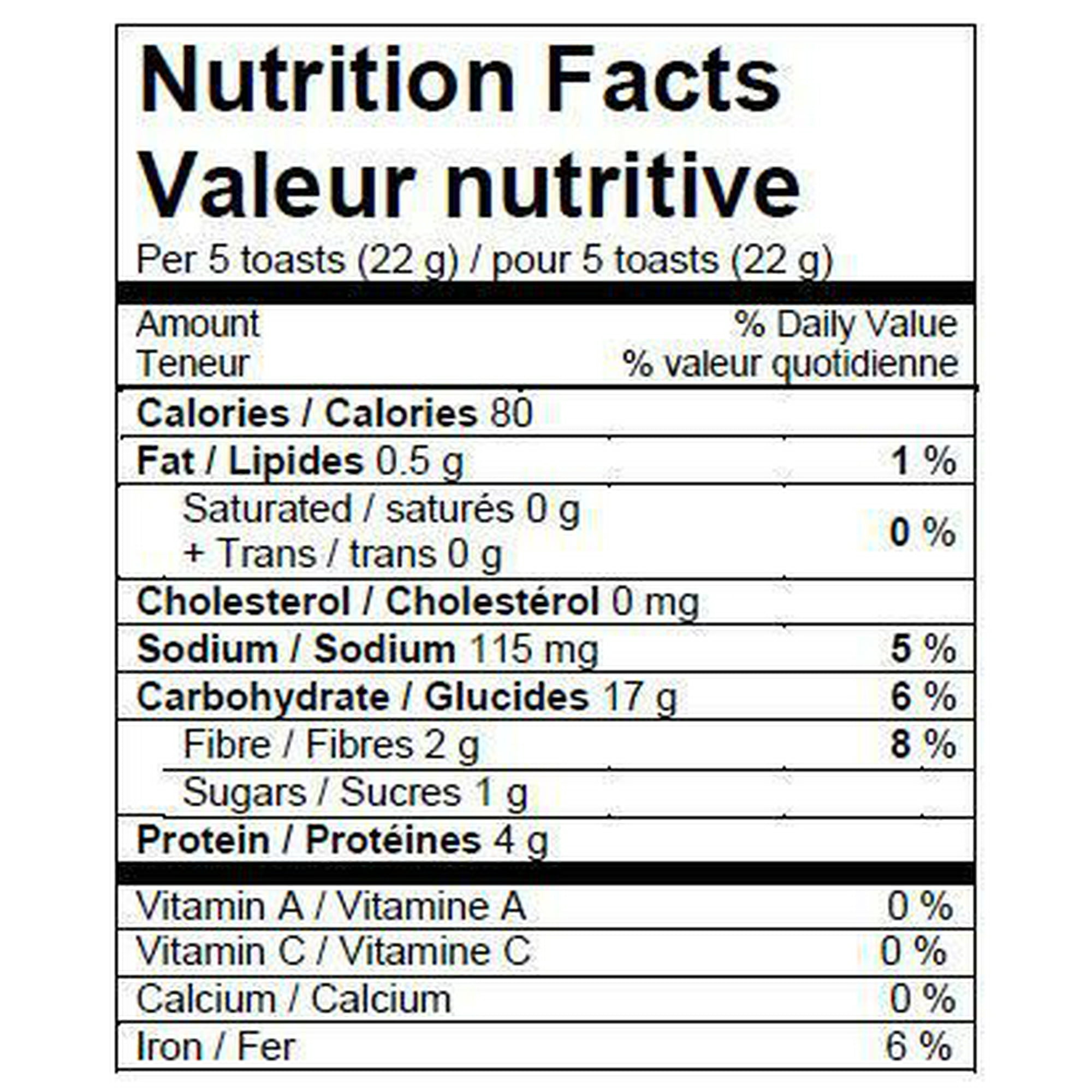 Boulangerie Grissol Original Melba Toast - 21 g, Nutrition ...