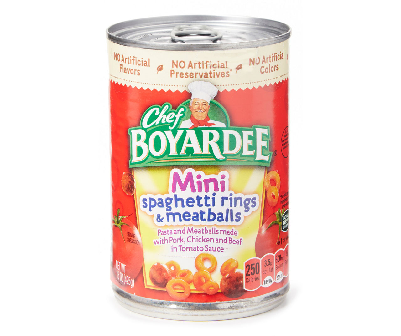 Chef Boyardee Spaghetti & Meatballs - 14.5oz : Target Each 14.5 oz, easy-open can of Chef Boyardee Spaghetti and Meatballs contains 2 servings of meatballs, pasta, and tomato sauce, with 9 grams of protein and 260 calories per serving. With no artificial flavors, colors, or preservatives, Chef Boyardee makes a wholesome meal for kids of ALL ages.
