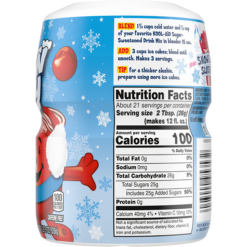 Kool-aid Nutrition Facts. Calories, carbs, fat, sodium & more ... Get nutrition information for Kool-aid items and over 200,000 other foods (including over 3,500 brands). Track calories, carbs, fat, sodium, sugar & 14 other nutrients. Toggle navigation Kool-Aid Jammers Tropical Punch Artificially Flavored Drink, 10 ct Box ... Kool-Aid Jammers artificially flavored Tropical Punch Drink Pouches deliver fun with a sweet blend of mixed fruit flavors. Our delicious tropical punch artificially flavored drink contains 75% less sugar than leading regular sodas (per 12 fl oz, this product 10g total sugar, leading regular sodas 40g total sugar), making it a great fruit flavored drink for kids to enjoy.