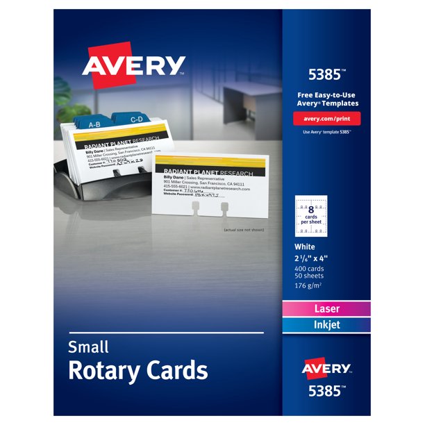 Avery Laser and Inkjet Index Cards, 3" x 5", White, 150/Pack (5388 ... Get Avery Laser and Inkjet Index Cards, 3" x 5", White, 150/Pack (5388) ... Free Avery templates simplify the process and ensure you get great prints every time. Handy Supply Keep a generous amount in stock for presentations with this pack of 150 Avery index cards. Each sheet of three boasts ultra-fine perforations for easy tearing after ...