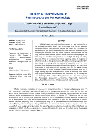 PDF] Off Label Medication and Use of Unapproved Drugs ...