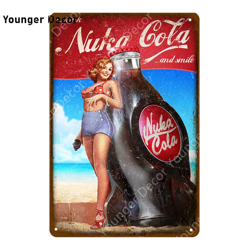 Minum Nuka Cola Quantum Poster Fallout 3 4 Permainan Tanda Logam Plakat  Dinding Untuk Rumah Kamar Toko Hotel Besi lukisan YI-111