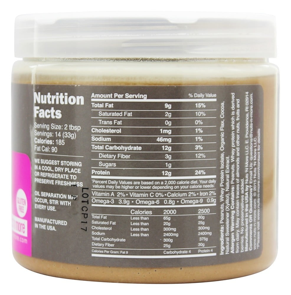 Nuts N More Nutrition Facts - Eat This Much Calories, carbs, fat, protein, fiber, cholesterol, and more for Nuts N More ( Peanut Butter). Want to use it in a meal plan? Head to the diet generator and ...