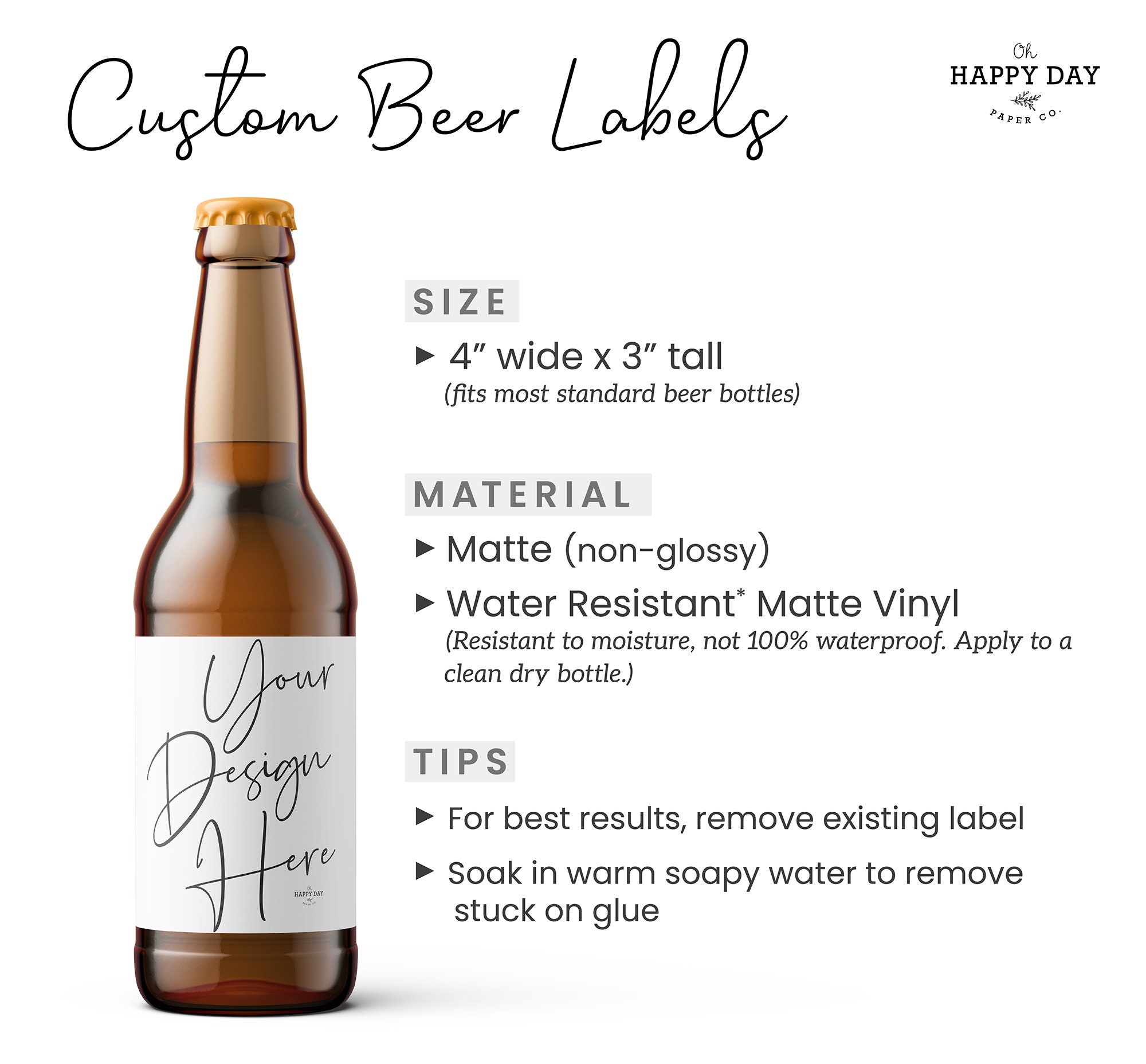 How to Create Your Own Beer Bottle Labels Let your creativity run wild — dream up something abstract, add an extra little detail, play with the standard symmetrical format, or simply just modify the dimensions of a standard label. Choose a Beer Bottle Label Material. Once you have selected the perfect beer label style and shape, it's time to pick a label material.