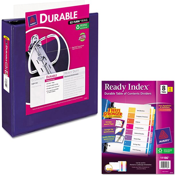 Avery 1.5" Durable View Binder with EZ-Turn Ring and Avery Ready Index Table of Contents Dividers 11186, 8-Tab, 6 Sets Bundle