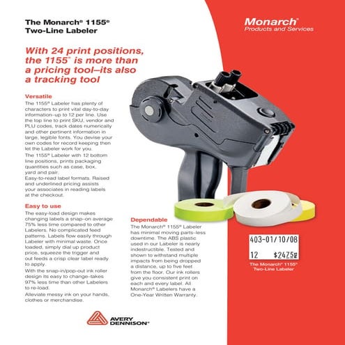Avery Dennison Price Gun CAS1/8: One Line, 8-Digit - The ...