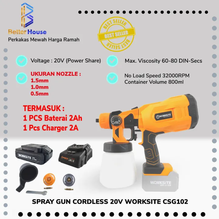SPRAYGUN SPRAY GUN CORDLESS 20V ALAT CAT BATERAI WORKSITE ...