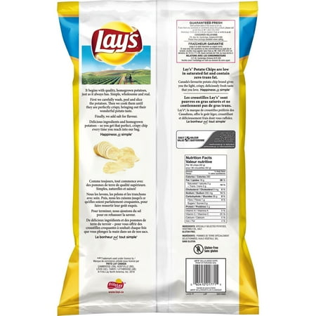 Lays nutrition label. FRITOS® Original Corn Chips | FritoLay Nutrition Facts The popularity of FRITOS ® corn chips puts this iconic snack in a class of its own. From small towns and family barbecues to parties in the big city, this classic snack is still satisfying fans after more than 80 years. Lay's Classic Potato Chips - Shop Chips at H-E-B 10mg. 0%. Vitamin C. 0. 6%. Iron. 0.6mg. 2%. * The % Daily Value (DV) tells you how much a nutrient in a serving of food contributes to a daily diet. 2,000 calories a day is used for general nutrition advice. Lay's Nutrition Facts - GroceryNutrition.org Lay's Nutrition Facts Select a Lay's product below to view the full nutrition facts, Weight Watchers points and ingredients. Our database currently contains 80 items from Lay's. .50oz Regular 1.37oz Sea Salt -n-pepper 1.50oz Tomato And Basil 1.87oz Bar-b-que 1.87oz Honey Bbq 1.87oz Hot 1.87oz Jalapeno 1.87oz Kettle Barbecue 1.87oz Limon Lays Classic Potato Chips Nutrition Facts - Eat This Much Calories, carbs, fat, protein, fiber, cholesterol, and more for Lays Classic Potato Chips (Lay's). Want to use it in a meal plan? Head to the diet generator ...