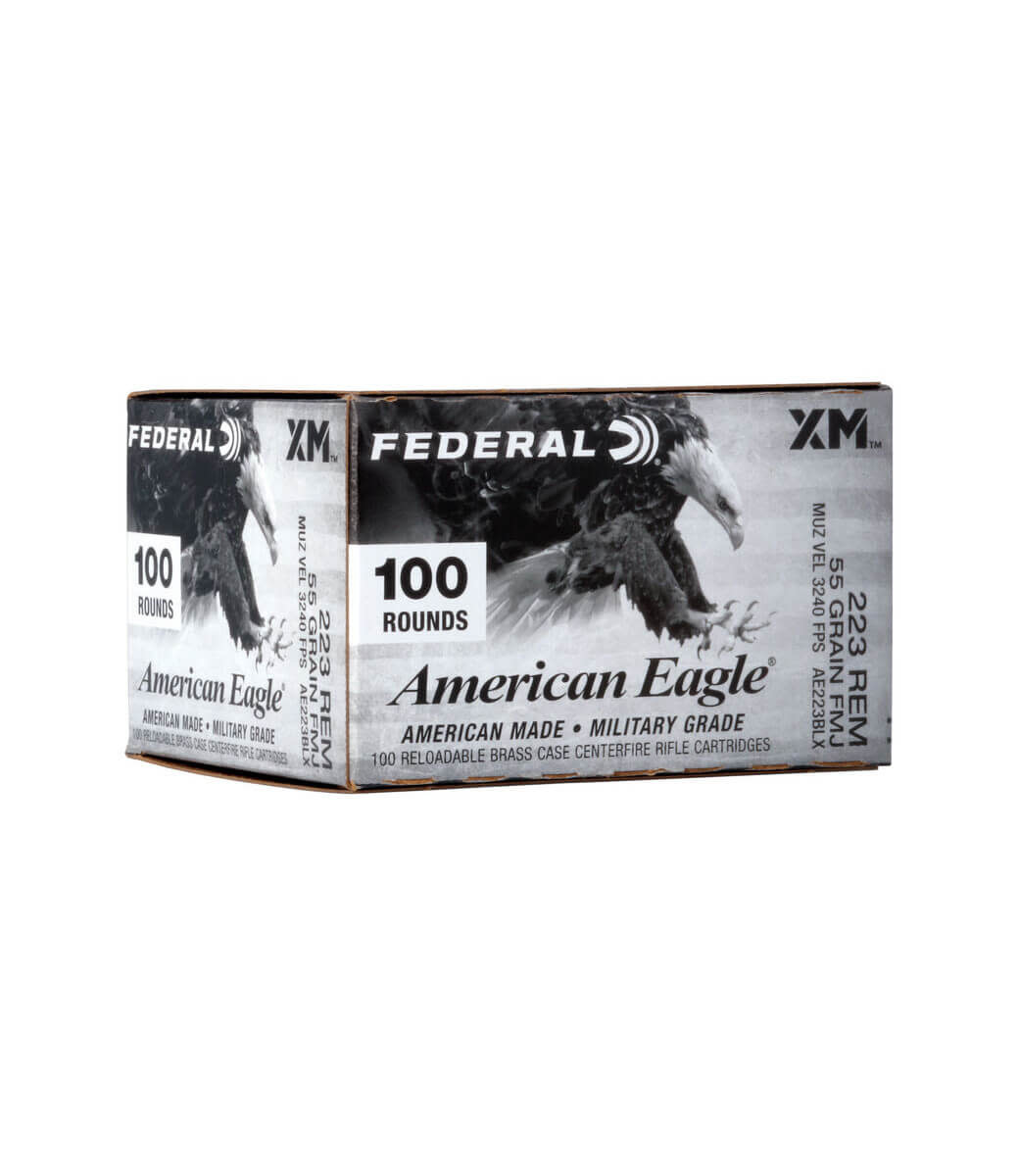 Federal American Eagle Black Pack 223 Remington 55 Gr FMJ in We the ... Federal's 223 Remington cartridges are a consistent, reliable, and accurate choice for use on the range, competition, for recreation, or matches and training. With Federal's American Eagle Black Packs these tried-and-true rounds now come at an exceptional value!