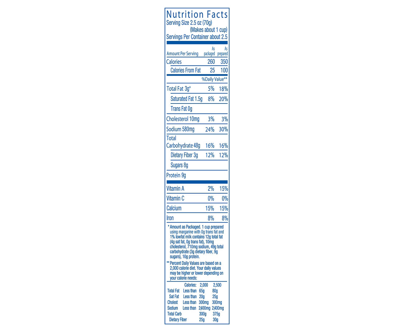 Kraft Original Flavor Macaroni and Cheese Dinner - Shop ... Enriched Macaroni (Wheat Flour, Durum Flour, Niacin, Ferrous Sulfate [Iron], Thiamin Mononitrate [Vitamin B1], Riboflavin [Vitamin B2], Folic Acid), Cheese Sauce Mix (Whey, Milkfat, Salt, Milk Protein Concentrate, Sodium Triphosphate, Contains Less than 2% of Tapioca Flour, Citric Acid, Lactic Acid, Sodium Phosphate, Calcium Phosphate, with … Kraft Mac And Cheese Nutrition Prepared - Find Property to Rent Mar 29, 2022 · A portion also has 29 percent of the fat. Calories in better than kraft mac n cheese calories: Source: laospam.blogspot.com. Calories, protein and fat per serving. Nutrition kraft macaroni and cheese prepared. Source: . Calories, protein and fat per serving. There are 350 calories in 1 cup prepared (2.5 oz) of kraft macaroni ... Kraft Mac And Cheese Food Label - This Nutrition Aug 8, 2022 · Kraft Mac And Cheese Food Label. Last Updated: August 08, 2022. Learn more information about kraft mac and cheese food label. In this article we'll discuss kraft mac and cheese food label.