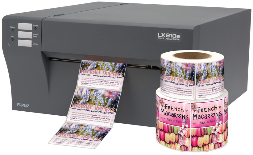 DTM Shop | LX910e Color Label Printer | buy online The LX910e is the fastest and highest print quality colour label printer ever developed by Primera. It comes in a tough metal case and utilises one single tri-colour (CMY) ink cartridge. LX910e features fast print speeds of up to 4.5" (114 mm) per second, a dual ink system with dye or pigment ink and an integrated cutter.